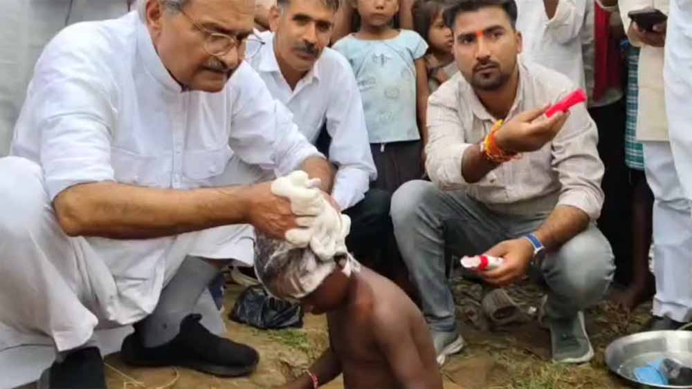 मध्यप्रदेश के रीवा जिले में सांसद जनार्दन मिश्रा का अनोखा अंदाज देखने को मिला। सेवा पखवाड़ा कार्यक्रम के तहत मंगलवार को वे बड़ागांव पंचायत पहुंचे, जहां उन्होंने मुसहर समाज के बच्चों को खुद नहलाया, उनके नाखून काटे और गंदे कपड़े भी धोए।