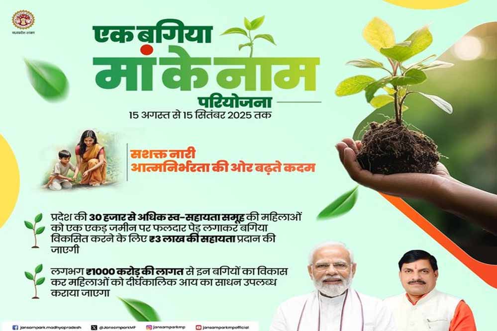“एक बगिया माँ के नाम’’ परियोजना अंतर्गत प्रदेश की 31 हजार से अधिक स्वयं सहायता समूह की महिलाओं को लाभ मिलेगा। इनकी निजी जमीन पर 30 लाख से अधिक फलदार पौधे लगाएं जाएंगे, जो समूह की महिलाओं की आर्थिक समृद्धि का आधार बनेंगे।