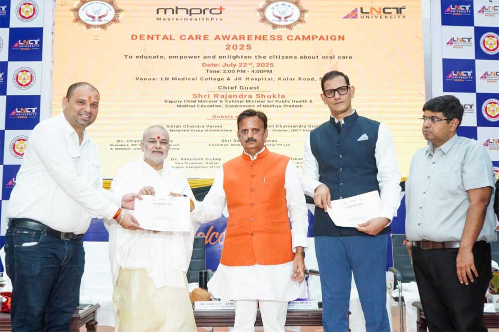 राजधानी भोपाल स्थित एलएन मेडिकल कॉलेज और जेके हॉस्पिटल परिसर में आज 22 जुलाई को 'मास्टर हेल्थ प्रो' (Master Health Pro) के तत्वावधान में ‘डेंटल केयर अवेयरनेस कैंपेन 2025’ का शुभारंभ हुआ। इस जनहितैषी कार्यक्रम का उद्देश्य लोगों को मौखिक स्वास्थ्य के प्रति जागरूक करना रहा।